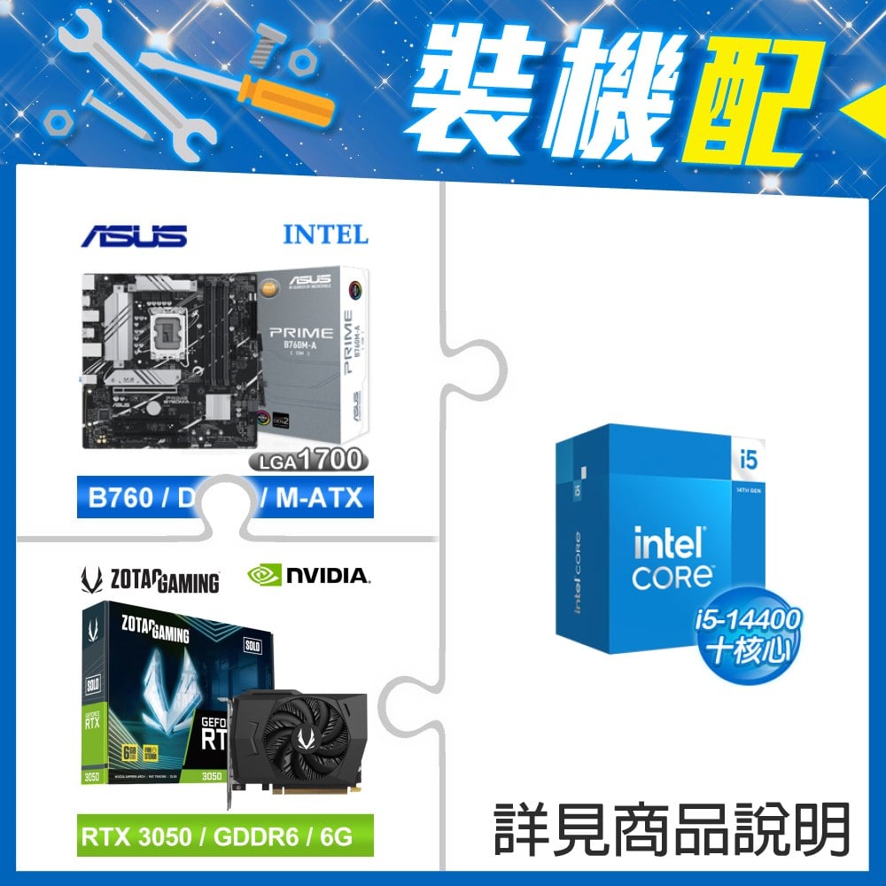 ☆裝機配★ i5-14400+華碩 PRIME B760M-A WIFI-CSM D5 M-ATX主機板+ZOTAC RTX3050 6G GDDR6 Solo 顯示卡