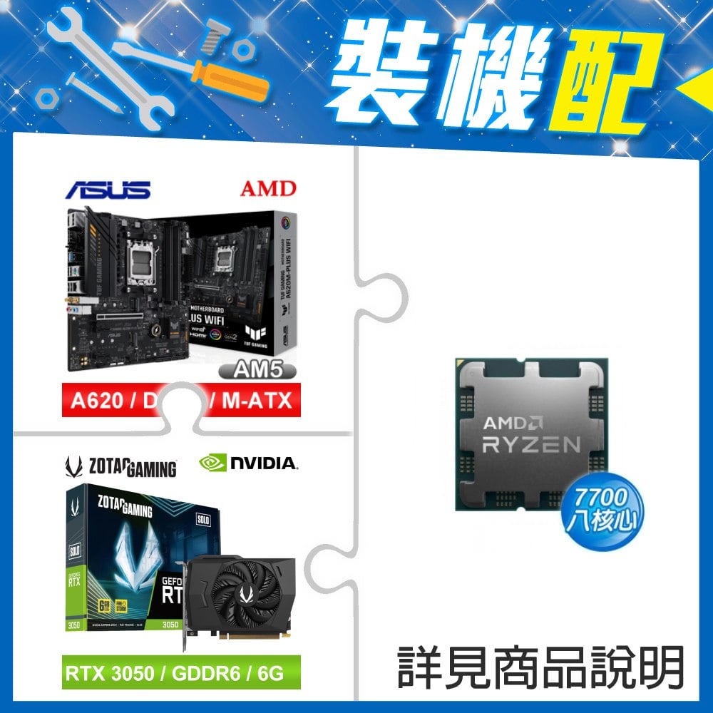 ☆裝機配★ AMD R7 7700 MPK+華碩 TUF GAMING A620M-PLUS WIFI MATX主機板+ZOTAC RTX3050 6G GDDR6 Solo 顯示卡