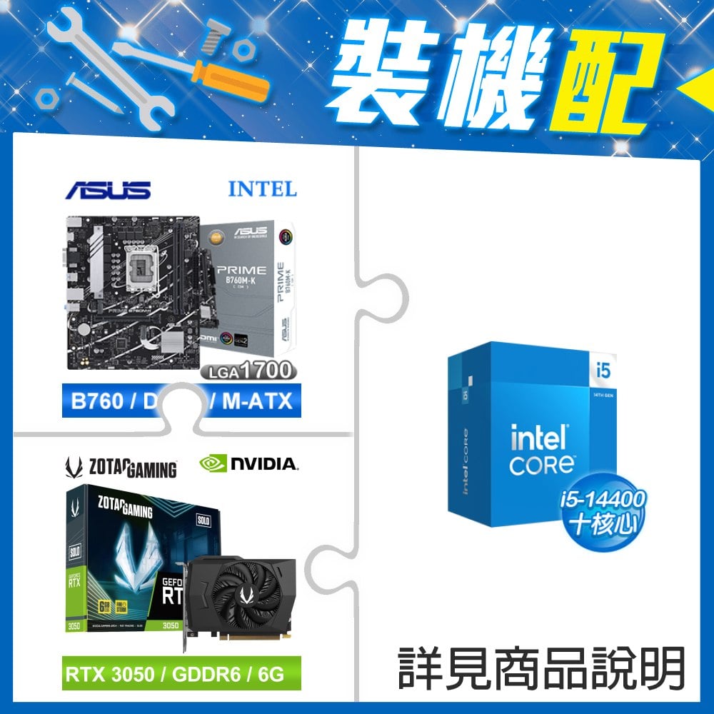 ☆裝機配★ i5-14400+華碩 PRIME B760M-K-CSM D5 M-ATX主機板+ZOTAC RTX3050 6G GDDR6 Solo 顯示卡