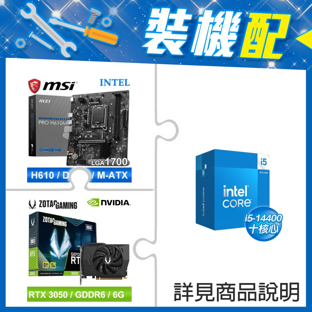 ☆裝機配★ i5-14400F+微星 PRO H610M-S D4 M-ATX主機板+ZOTAC RTX3050 6G GDDR6 Solo 顯示卡