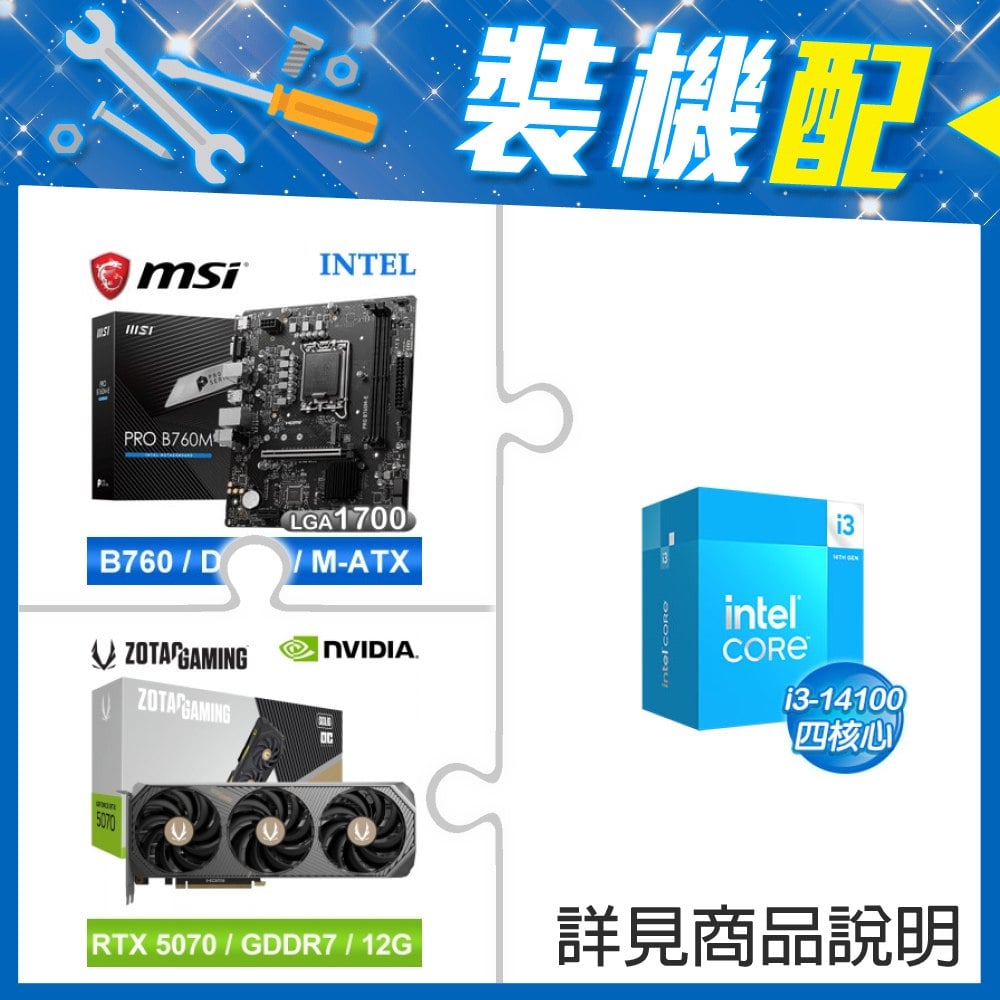 ☆裝機配★ i3-14100+微星 PRO B760M-E D5 MATX主機板+索泰 RTX 5070 SOLID OC 12G 顯示卡