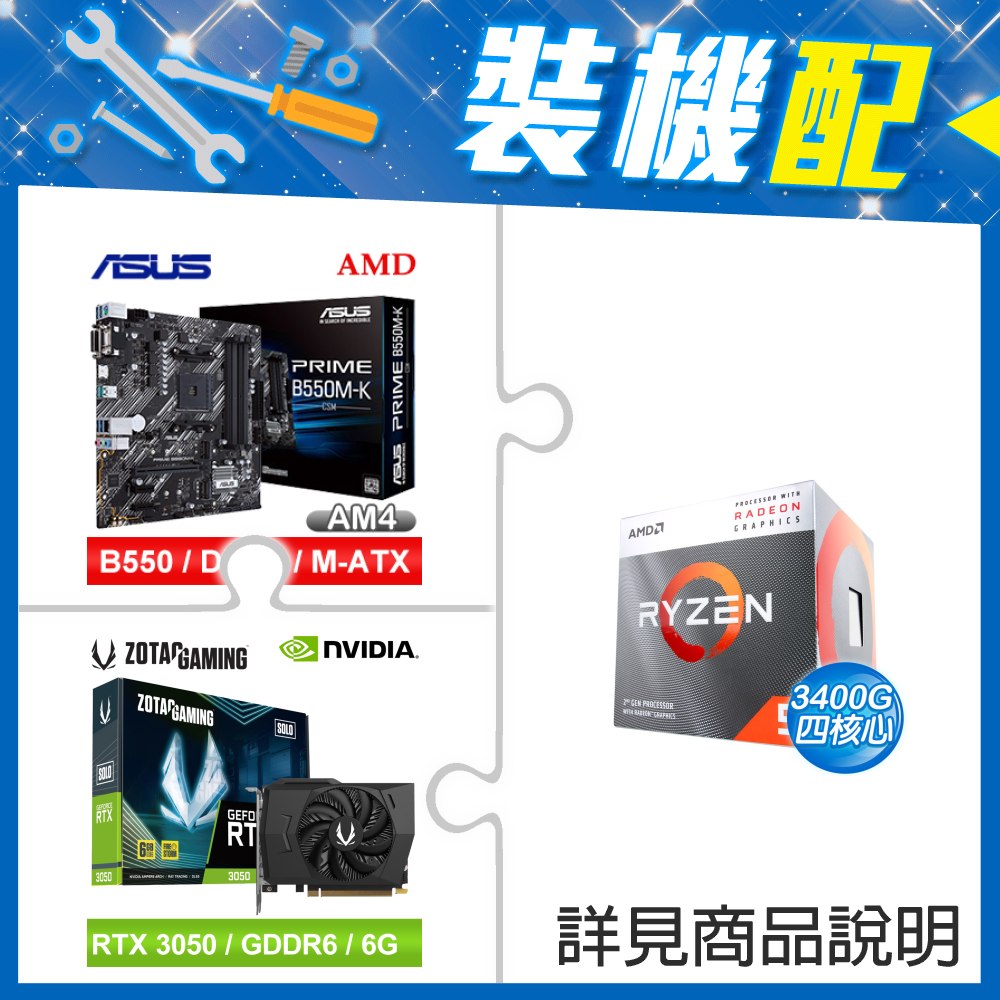 ☆裝機配★ AMD R5 3400G+華碩 PRIME B550M-K CSM M-ATX主機板+ZOTAC RTX3050 6G GDDR6 Solo 顯示卡