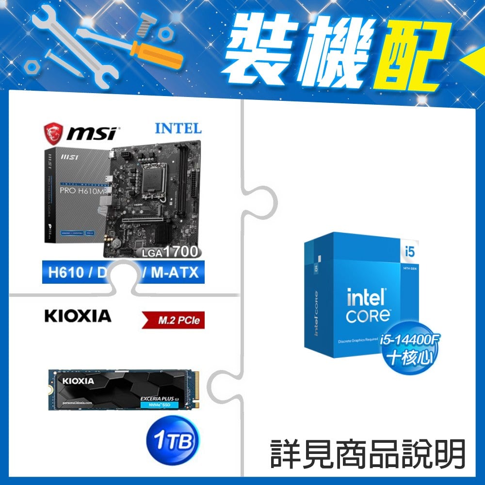 ☆裝機配★ i5-14400F+微星 PRO H610M-S D4 M-ATX主機板+鎧俠 EXCERIA PLUS G3 1TB PCIe Gen4x4 SSD