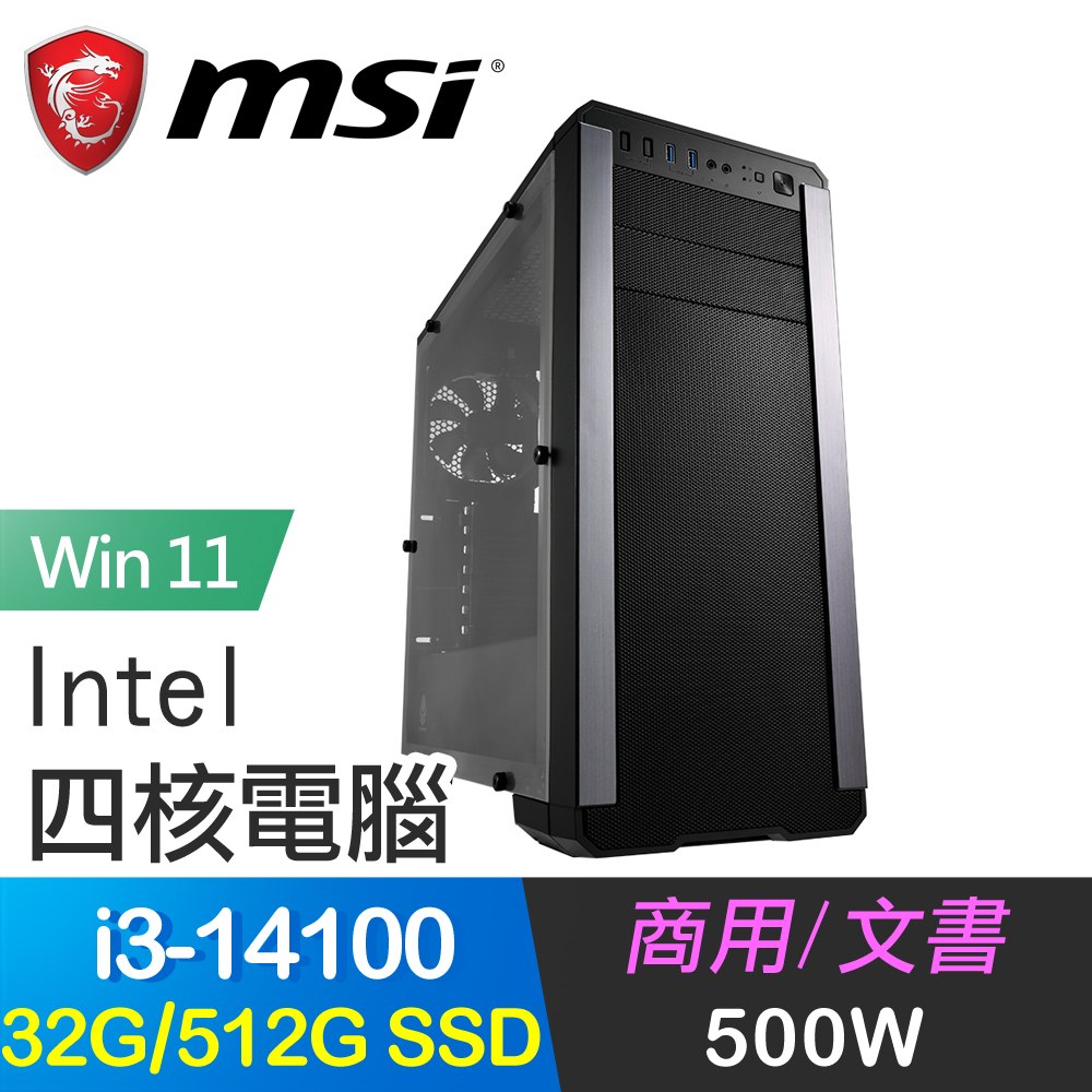 微星系列【歡樂8號win】i3-14100四核 商務電腦(32G/500G SSD/Win11)