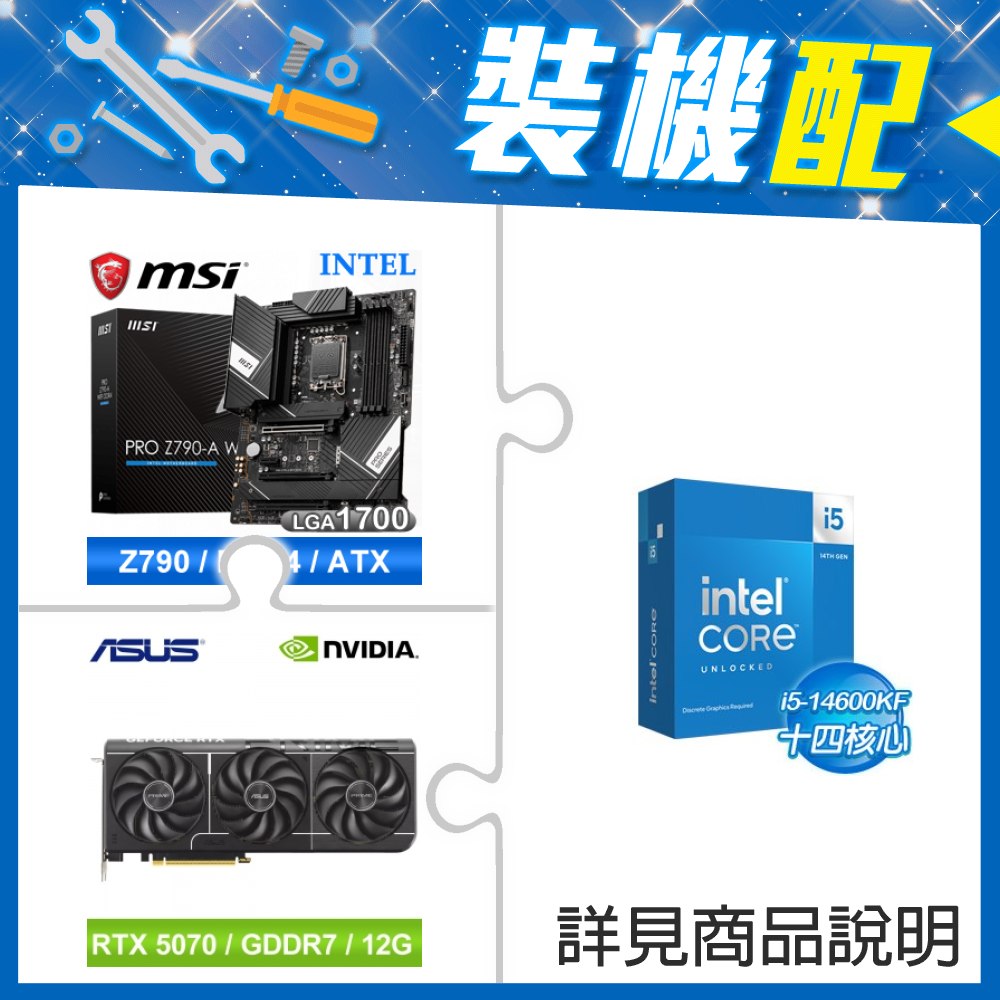 ☆裝機配★ i5-14600KF+微星 PRO Z790-A WIFI DDR4 ATX主機板+華碩 PRIME-RTX5070-O12G 顯示卡
