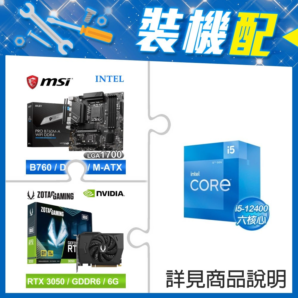 ☆裝機配★ i5-12400F+微星 PRO B760M-A WIFI D4 MATX主機板+ZOTAC RTX3050 6G GDDR6 Solo 顯示卡