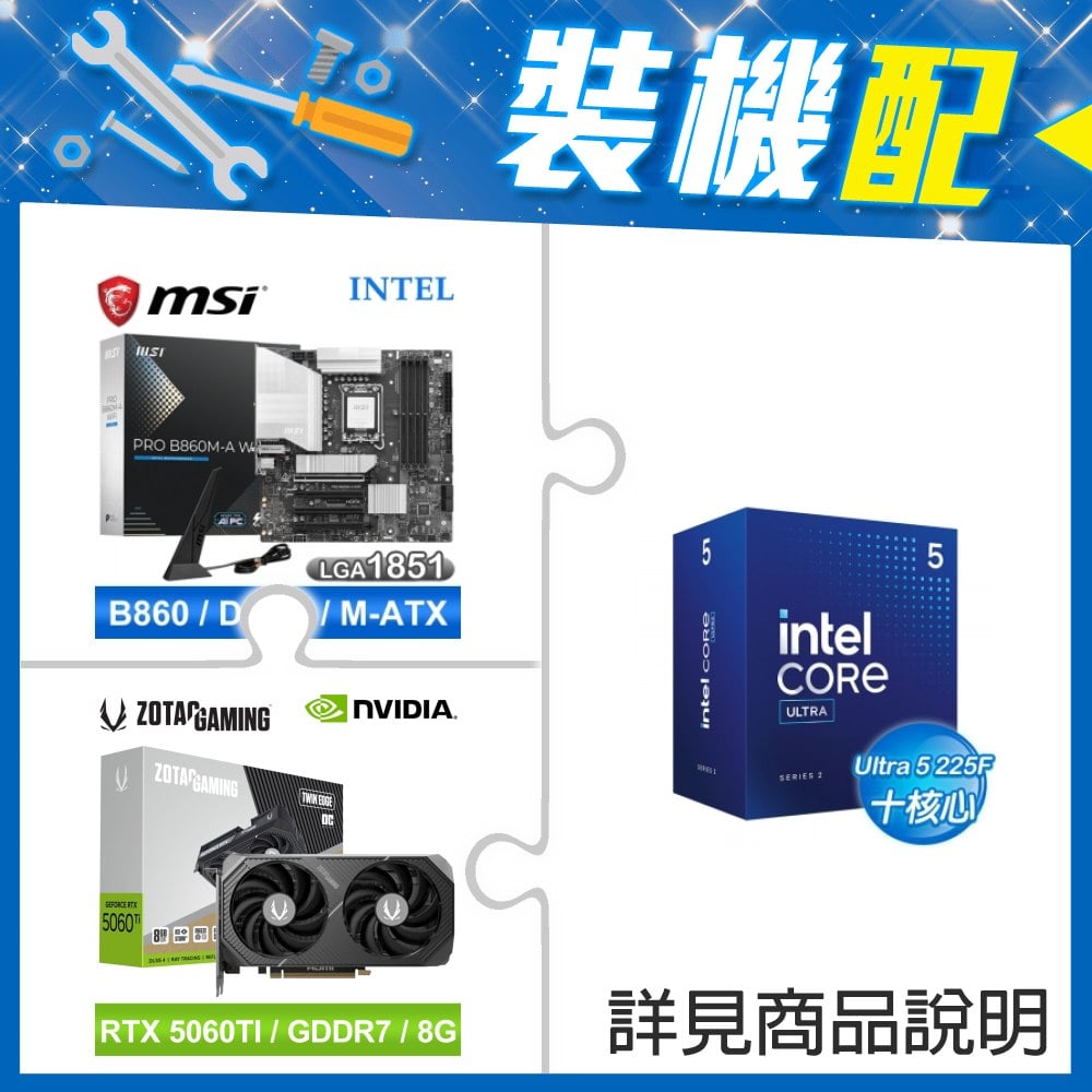 ☆裝機配★ Core U5 225F+微星 PRO B860M-A WIFI D5 MATX主機板+索泰 RTX 5060 TI 8GB Twin Edge OC 顯示卡
