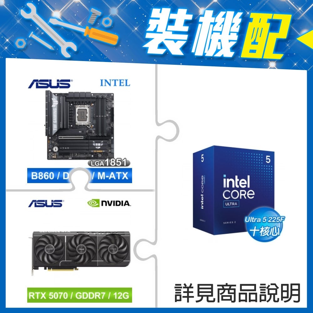☆裝機配★ Core U5 225F+華碩 TUF GAMING B860M-PLUS WIFI D5 MATX主機板+華碩 PRIME-RTX5070-O12G 顯示卡