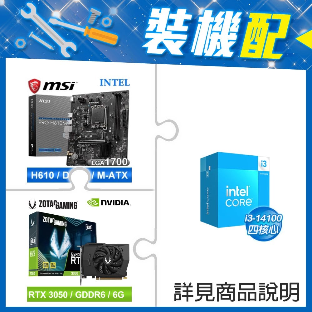 ☆裝機配★ i3-14100F+微星 PRO H610M-S D4 M-ATX主機板+ZOTAC RTX3050 6G GDDR6 Solo 顯示卡