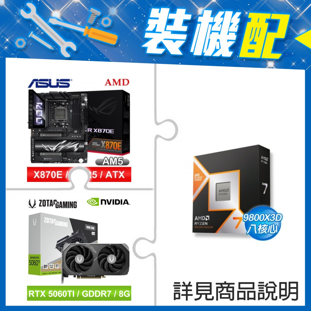 ☆裝機配★ AMD R7 9800X3D+華碩 ROG STRIX X870-A GAMING WIFI ATX主機板+索泰 RTX 5060 TI 8GB Twin Edge OC 顯示卡