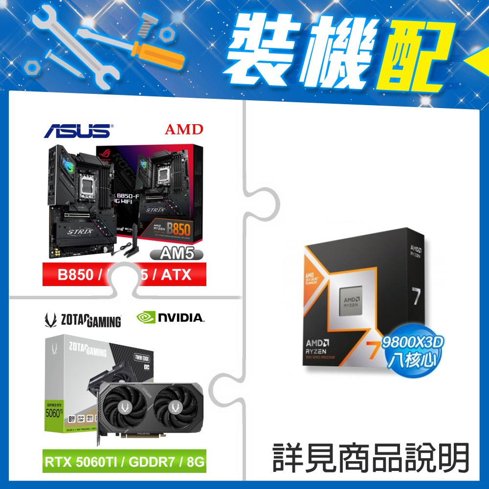 ☆裝機配★ AMD R7 9800X3D+華碩 ROG STRIX B850-F GAMING WIFI ATX主機板+索泰 RTX 5060 TI 8GB Twin Edge OC 顯示卡