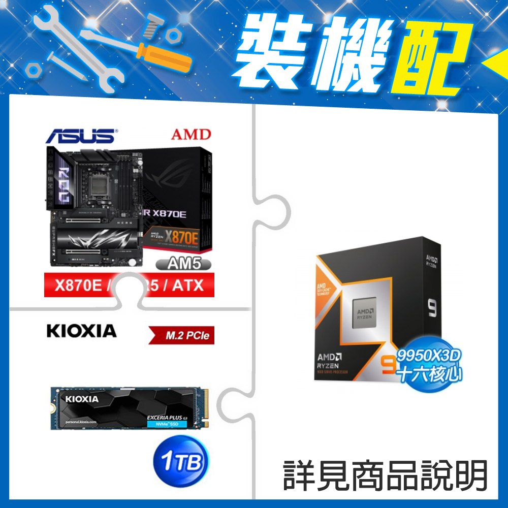 ☆裝機配★ AMD R9 9950X3D+華碩 ROG CROSSHAIR X870E HERO ATX主機板+鎧俠 EXCERIA PLUS G3 1TB PCIe Gen4x4 SSD