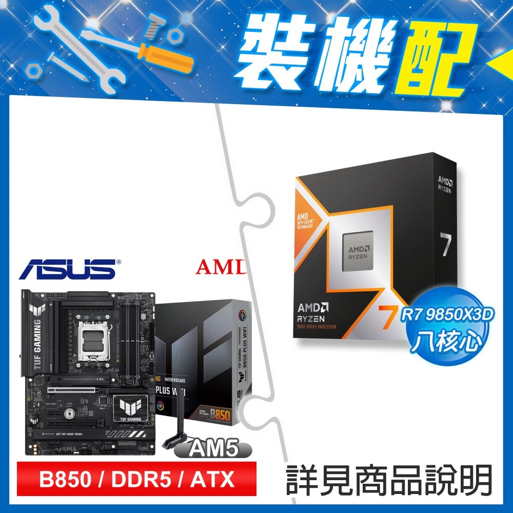 ☆裝機配★ AMD R7 9850X3D+華碩 TUF GAMING B850-PLUS WIFI ATX主機板