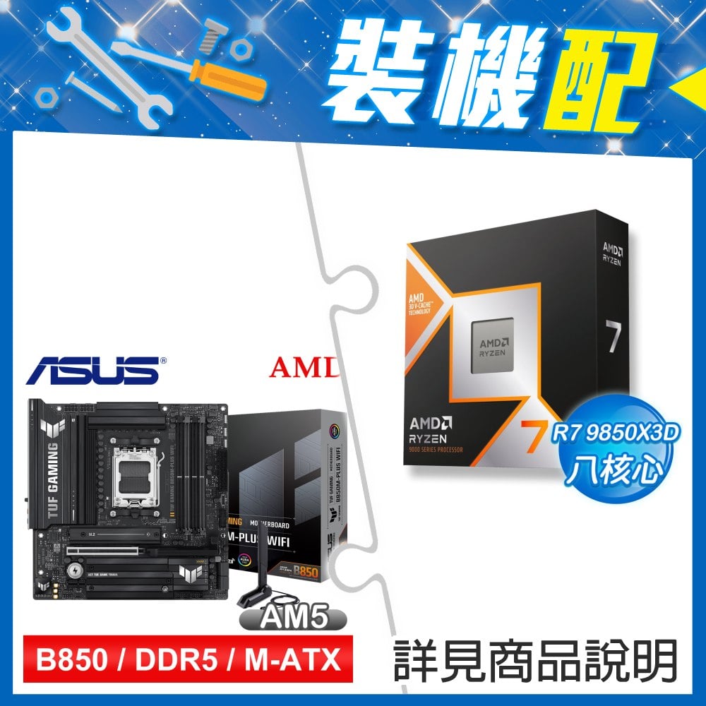 ☆裝機配★ AMD R7 9850X3D+華碩 TUF GAMING B850M-PLUS WIFI MATX主機板