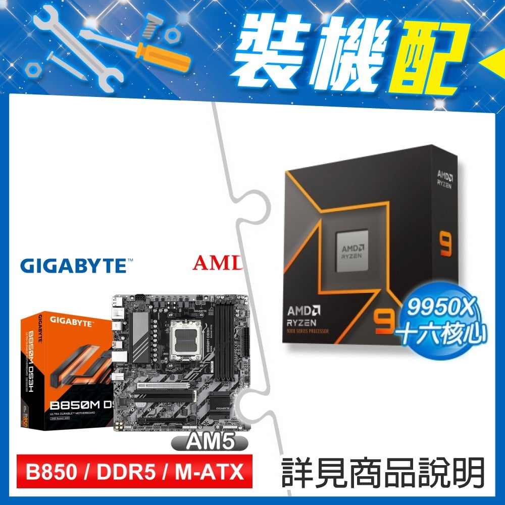 ☆裝機配★ AMD R9 9950X+技嘉 B850M DS3H MATX主機板
