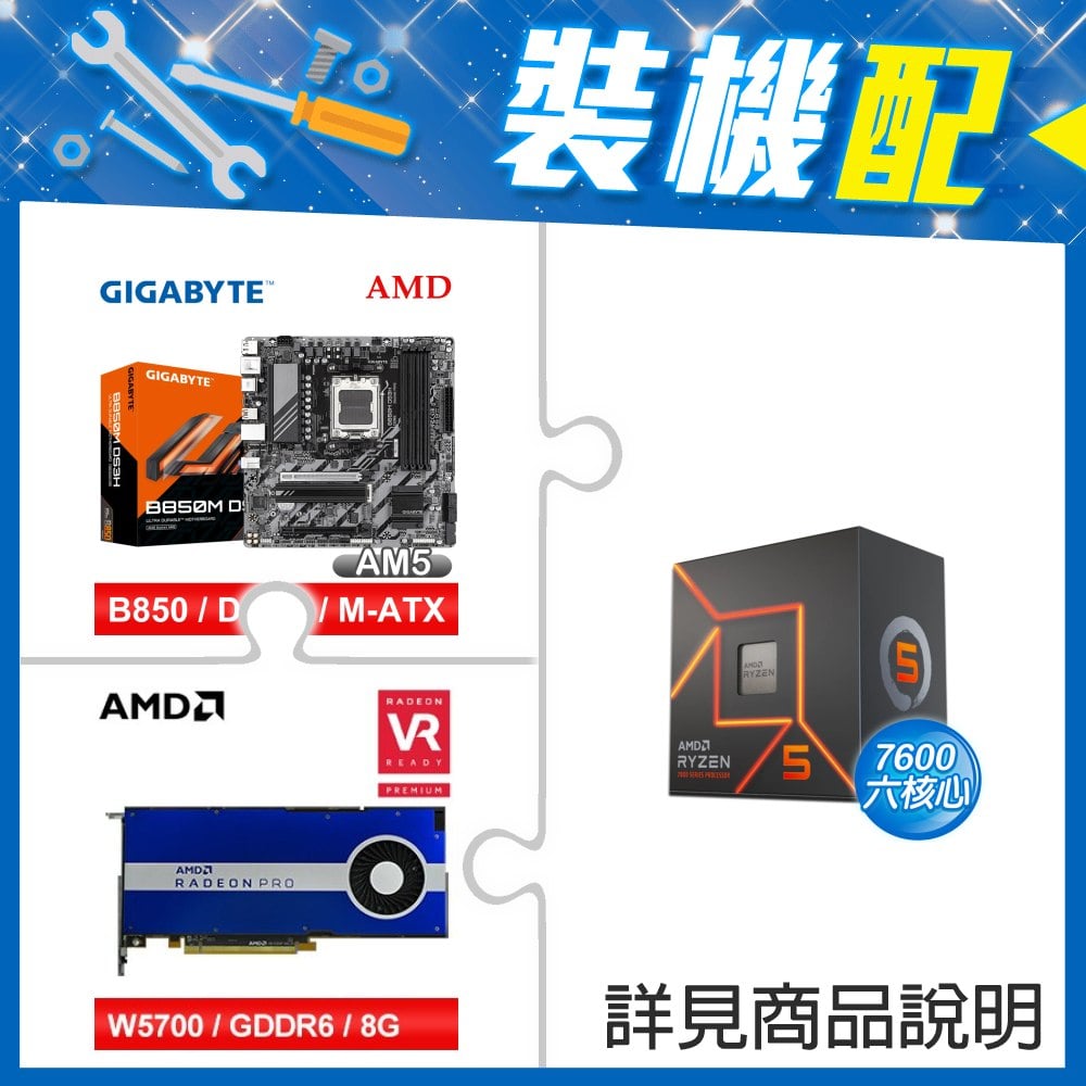 ☆裝機配★ AMD R5 7600+技嘉 B850M DS3H MATX主機板+AMD RadeonPro W5700 8G 256bit專業繪圖卡