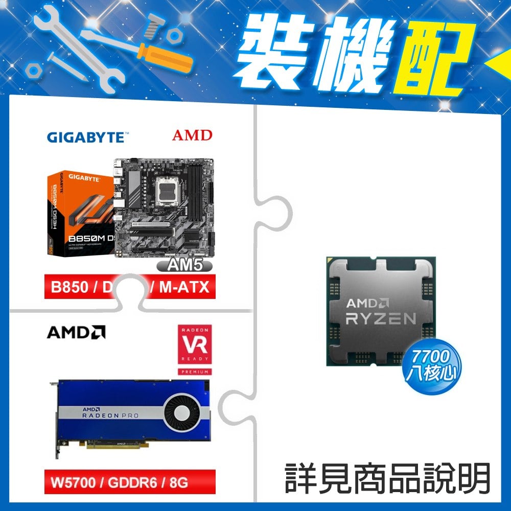 ☆裝機配★ AMD R7 7700 MPK+技嘉 B850M DS3H MATX主機板+AMD RadeonPro W5700 8G 256bit專業繪圖卡