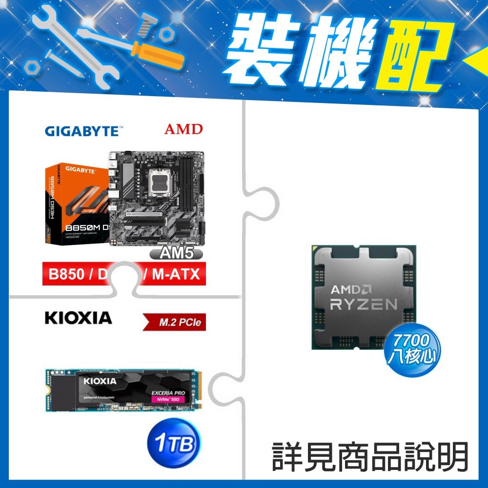 ☆裝機配★ AMD R7 7700 MPK+技嘉 B850M DS3H MATX主機板+鎧俠 EXCERIA PLUS G3 1TB PCIe Gen4x4 SSD