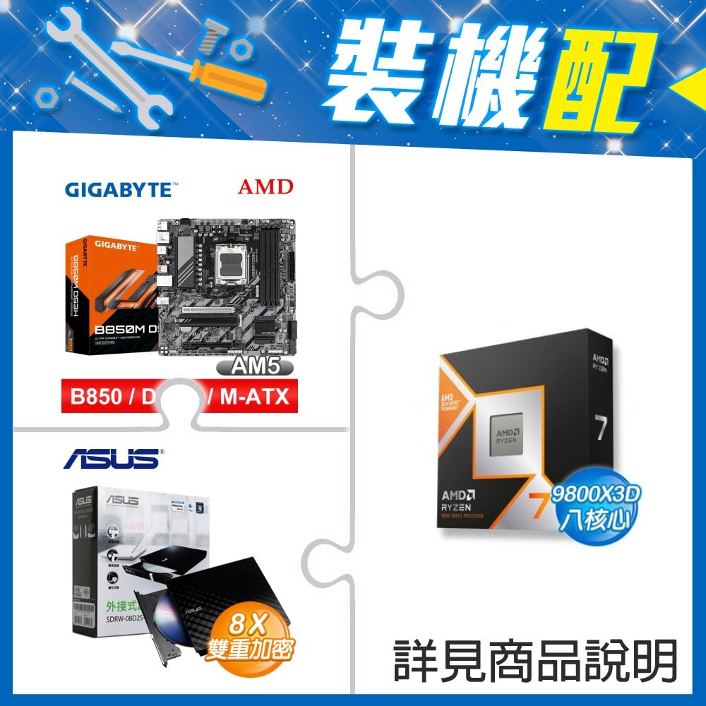 ☆裝機配★ AMD R7 9800X3D+技嘉 B850M DS3H MATX主機板+華碩 SDRW-08D2S-U 外接式燒錄機《黑》