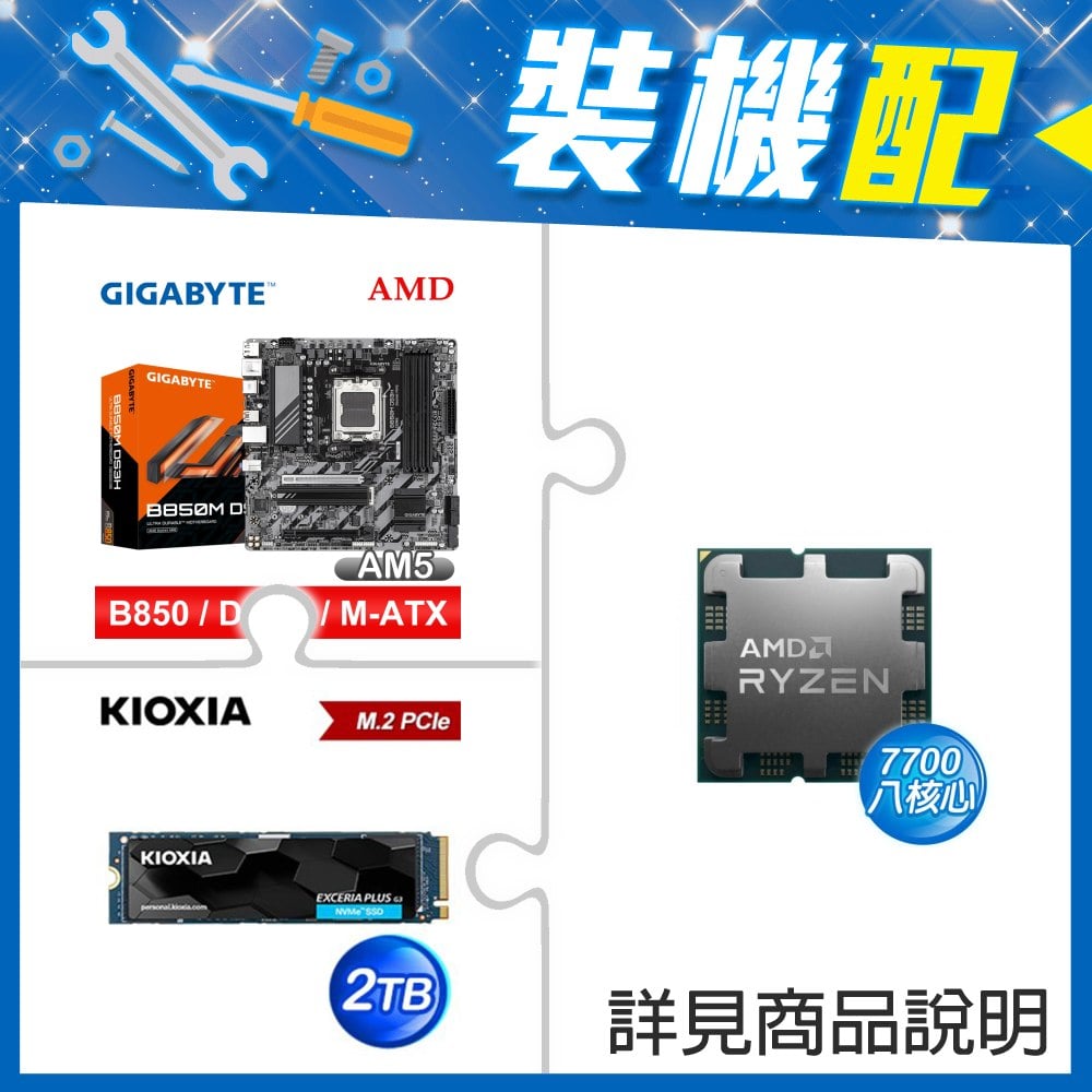 ☆裝機配★ AMD R7 7700 MPK+技嘉 B850M DS3H MATX主機板+鎧俠 EXCERIA PLUS G3 2TB PCIe Gen4x4 SSD