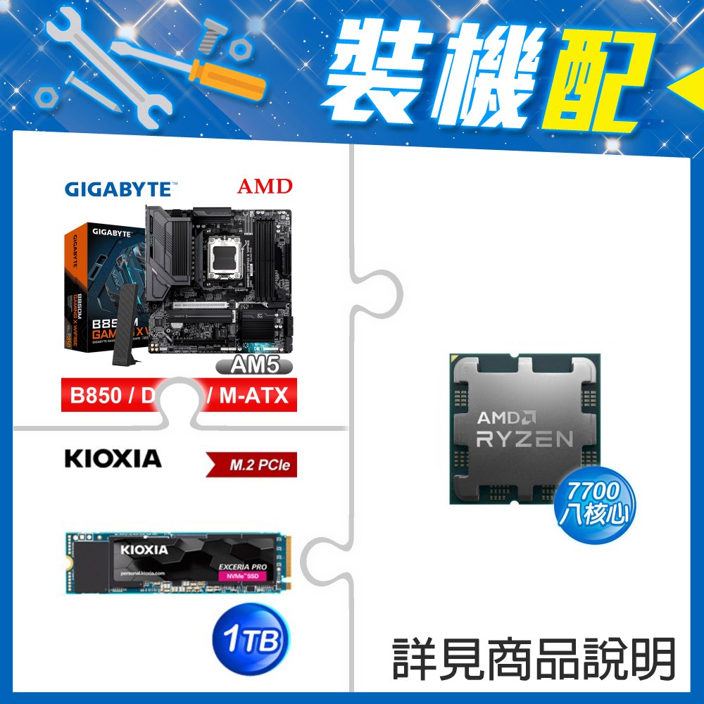 ☆裝機配★ AMD R7 7700 MPK+技嘉 B850M GAMING X WIFI6E MATX主機板+鎧俠 EXCERIA PLUS G3 1TB PCIe Gen4x4 SSD
