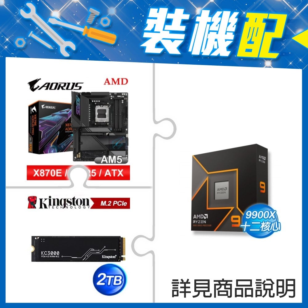 ☆裝機配★ AMD R9 9900X+技嘉 X870E AORUS PRO ATX主機板+金士頓 KC3000 2TB PCIe 4.0 NVMe M.2 SSD