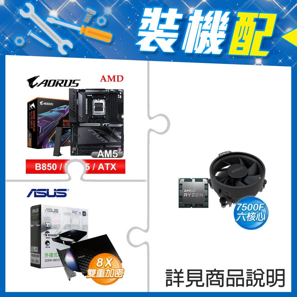 ☆裝機配★ AMD R5 7500F+技嘉 B850 AORUS ELITE WIFI7 ATX主機板+華碩 SDRW-08D2S-U 外接式燒錄機《黑》