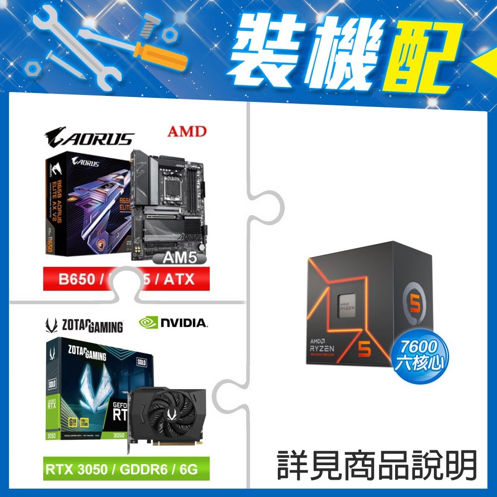 ☆裝機配★ AMD R5 7600+技嘉 B650 AORUS ELITE AX V2 D5 ATX主機板+ZOTAC RTX3050 6G GDDR6 Solo 顯示卡
