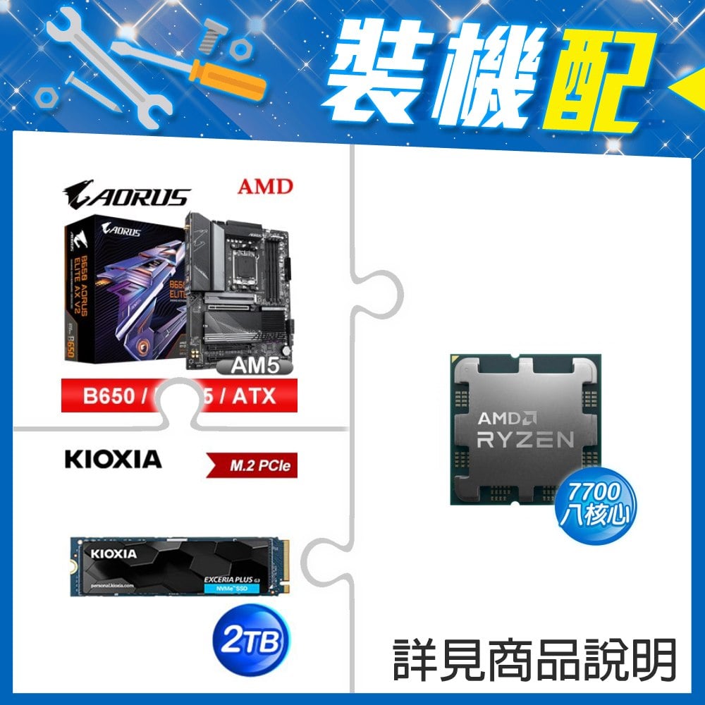 ☆裝機配★ AMD R7 7700 MPK+技嘉 B650 AORUS ELITE AX V2 D5 ATX主機板+鎧俠 EXCERIA PLUS G3 2TB PCIe Gen4x4 SSD