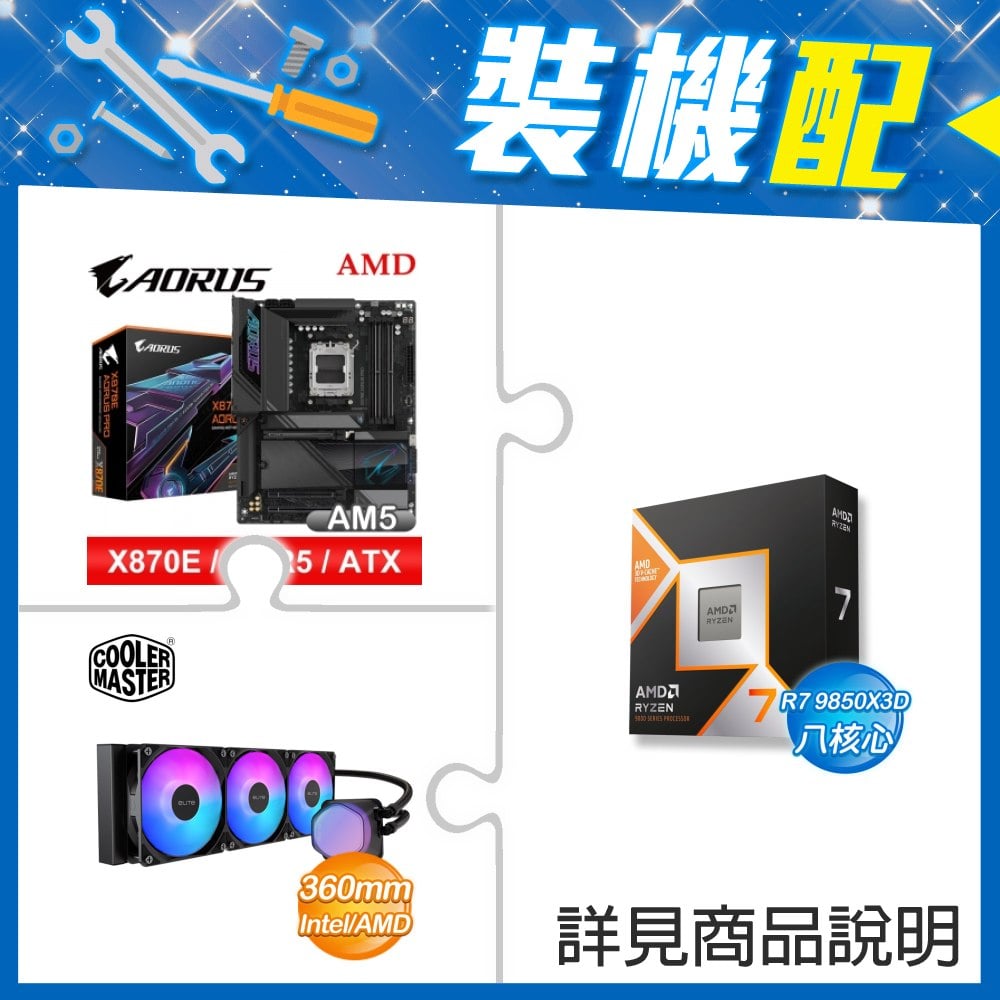 ☆裝機配★ AMD R7 9850X3D+技嘉 X870E AORUS PRO ATX主機板+酷碼 EliteLiquid 360 ARGB 水冷散熱器
