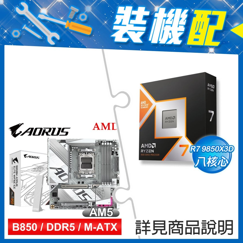 ☆裝機配★ AMD R7 9850X3D+技嘉 B850M AORUS ELITE WIFI6E ICE M-ATX主機板