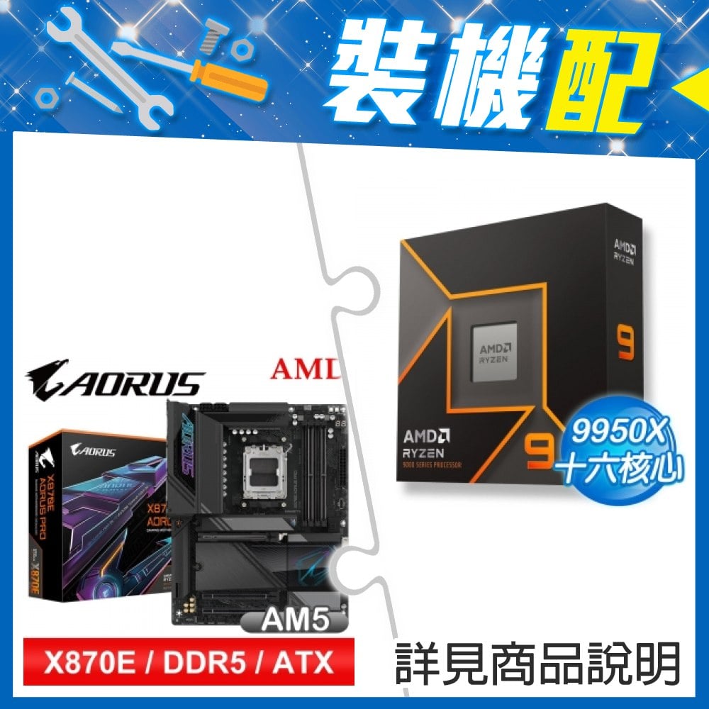 ☆裝機配★ AMD R9 9950X3D+技嘉 X870E AORUS PRO ATX主機板