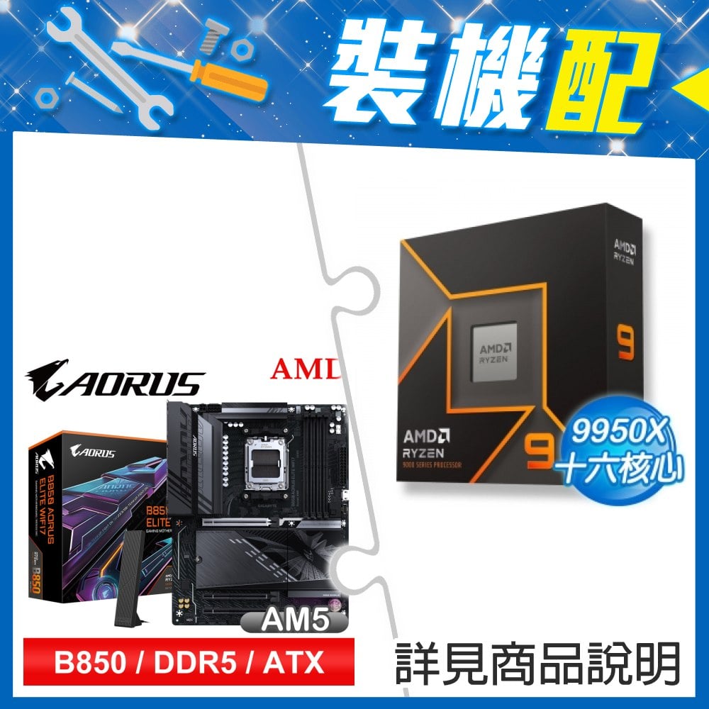 ☆裝機配★ AMD R9 9950X+技嘉 B850 AORUS ELITE WIFI7 ATX主機板