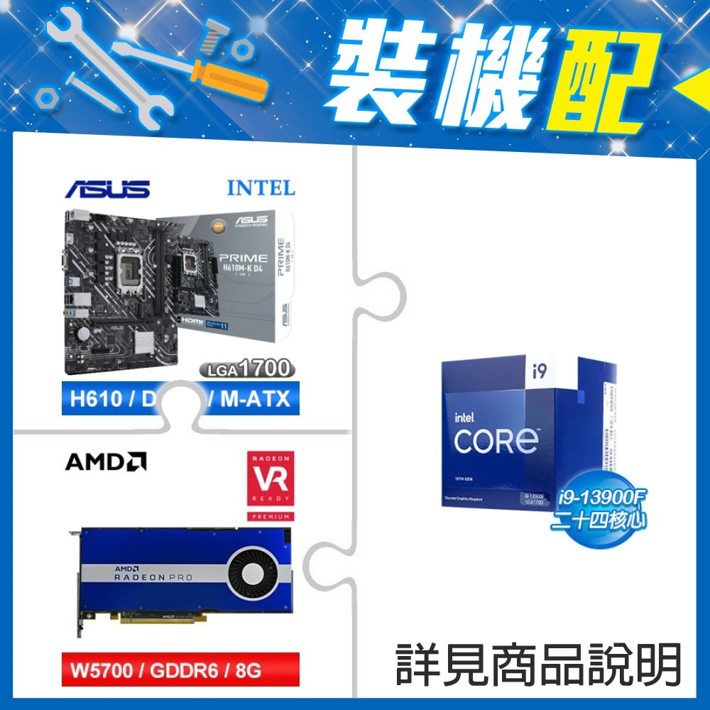 ☆裝機配★ i9-13900F《無內顯》+華碩 PRIME H610M-K D4-CSM M-ATX主機板+AMD RadeonPro W5700 8G 256bit專業繪圖卡