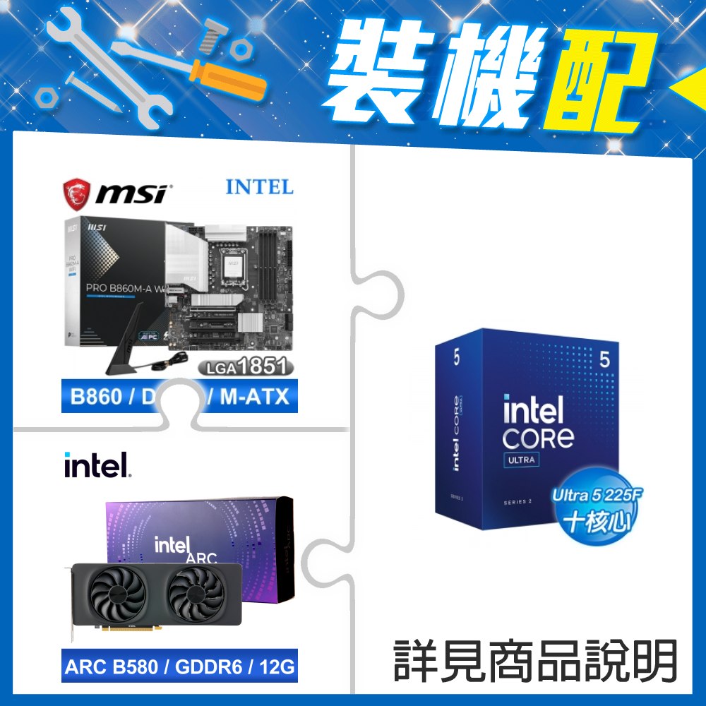 ☆裝機配★ Core U5 225F+微星 PRO B860M-A WIFI D5 MATX主機板+Intel Arc B580 12G 20 Core 顯示卡