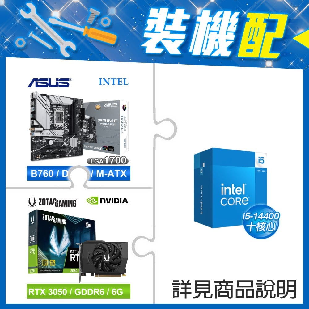 ☆裝機配★ i5-14400+華碩 PRIME B760M-A WIFI-CSM D5 M-ATX主機板+ZOTAC RTX3050 6G GDDR6 Solo 顯示卡