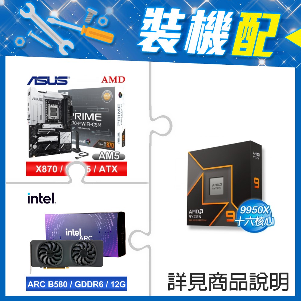 ☆裝機配★ AMD R9 9950X+華碩 PRIME X870-P WIFI-CSM ATX主機板+Intel Arc B580 12G 20 Core 顯示卡