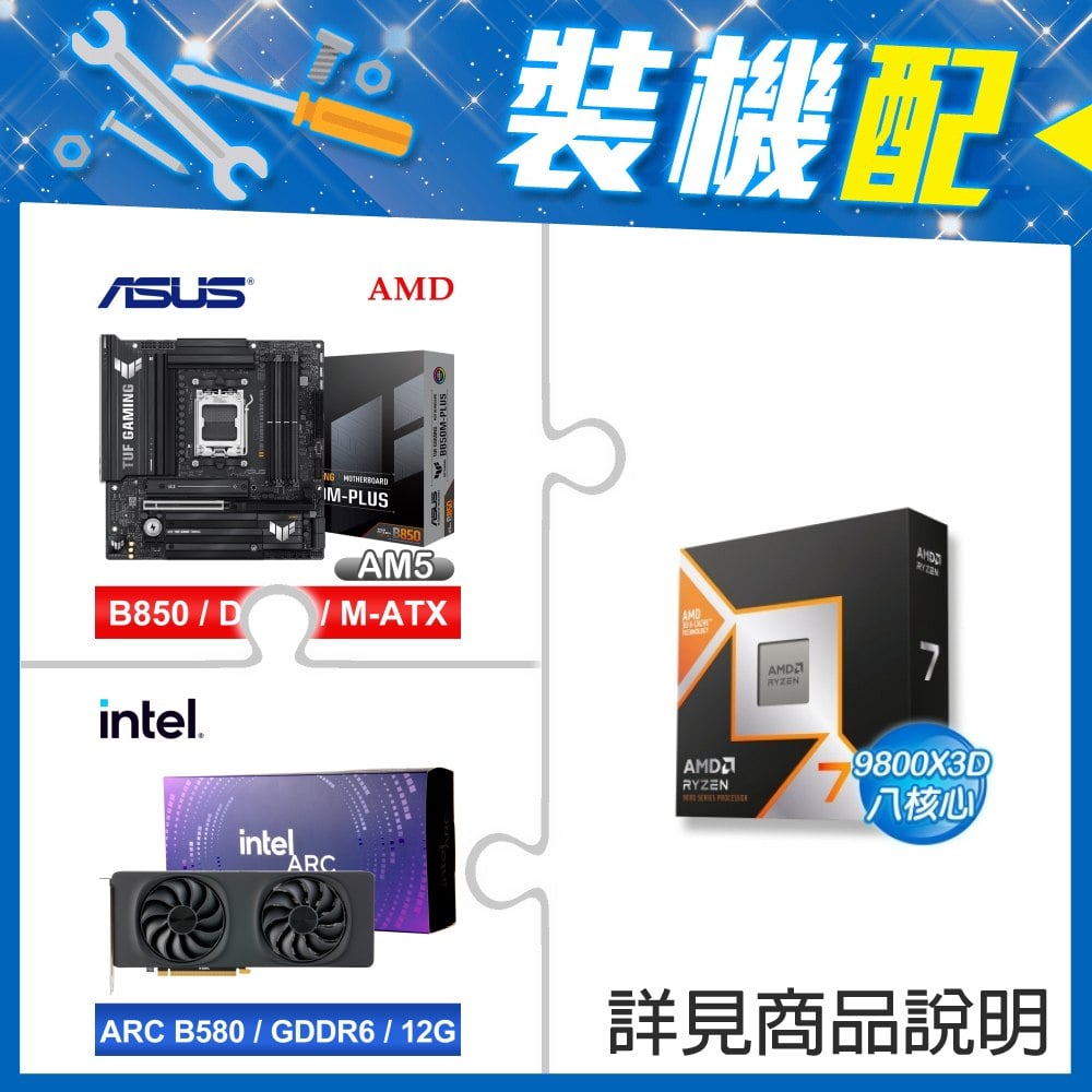 ☆裝機配★ AMD R7 9800X3D+華碩 TUF GAMING B850M-PLUS MATX主機板+Intel Arc B580 12G 20 Core 顯示卡