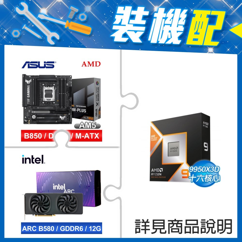 ☆裝機配★ AMD R9 9950X3D+華碩 TUF GAMING B650-PLUS WIFI ATX主機板+Intel Arc B580 12G 20 Core 顯示卡