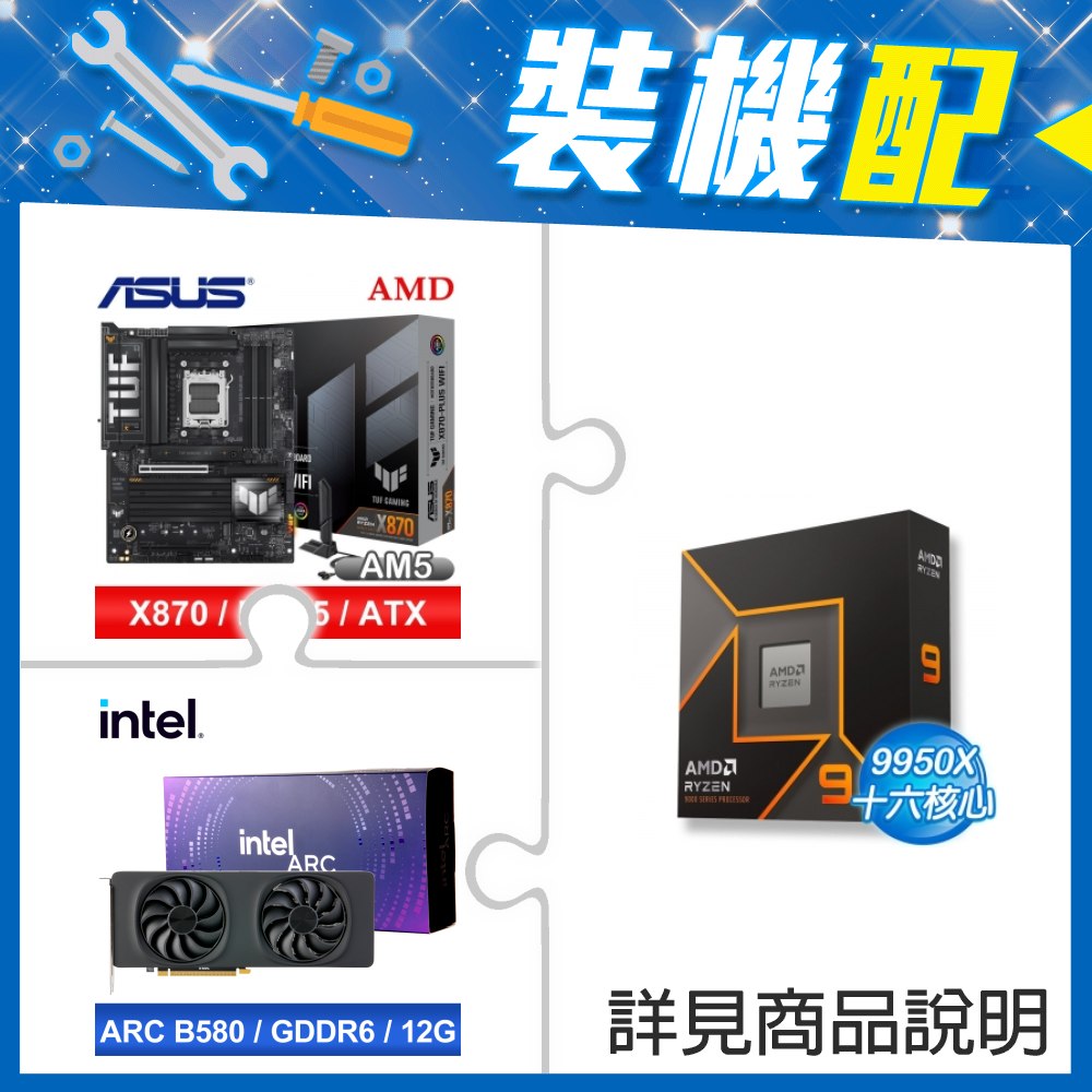 ☆裝機配★ AMD R9 9950X+華碩 TUF GAMING X870-PLUS WIFI ATX主機板+Intel Arc B580 12G 20 Core 顯示卡