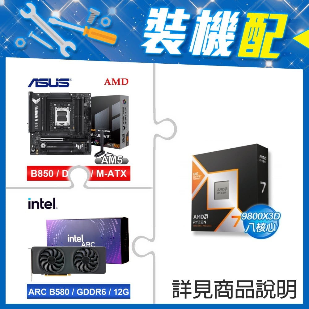 ☆裝機配★ AMD R7 9800X3D+華碩 TUF GAMING B850M-PLUS WIFI MATX主機板+Intel Arc B580 12G 20 Core 顯示卡