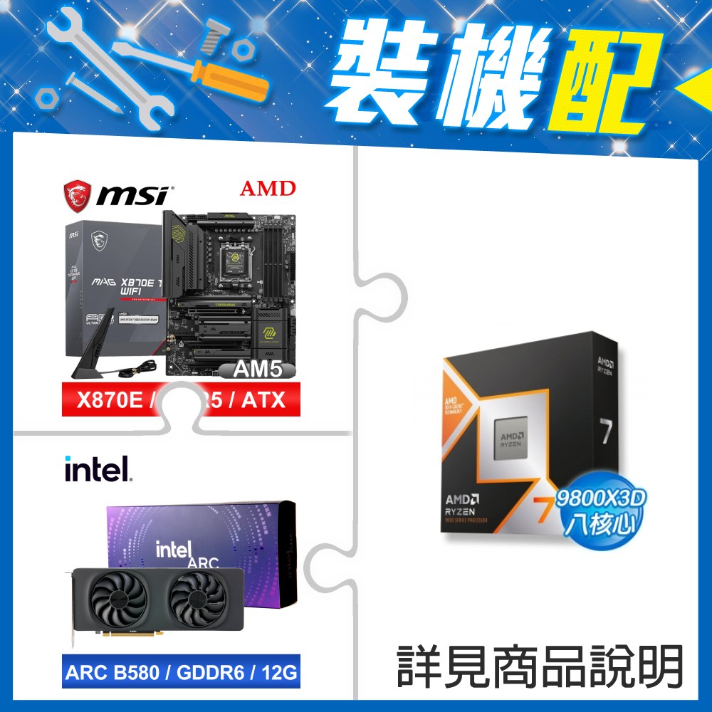 ☆裝機配★ AMD R7 9800X3D+微星 MAG X870E TOMAHAWK WIFI ATX主機板+Intel Arc B580 12G 20 Core 顯示卡