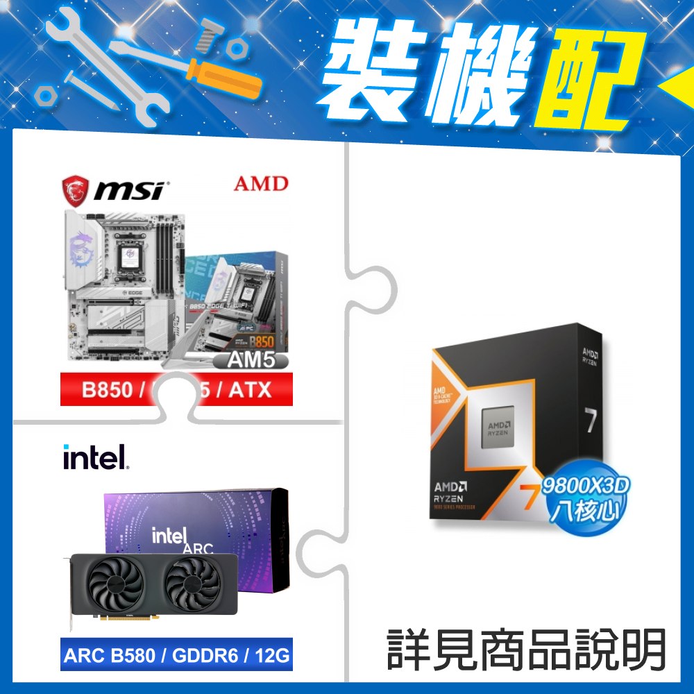 ☆裝機配★ AMD R7 9800X3D+微星 MPG B850 EDGE TI WIFI ATX主機板+Intel Arc B580 12G 20 Core 顯示卡