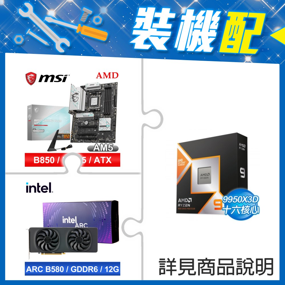 ☆裝機配★ AMD R9 9950X3D+微星 B850 GAMING PLUS WIFI ATX主機板+Intel Arc B580 12G 20 Core 顯示卡