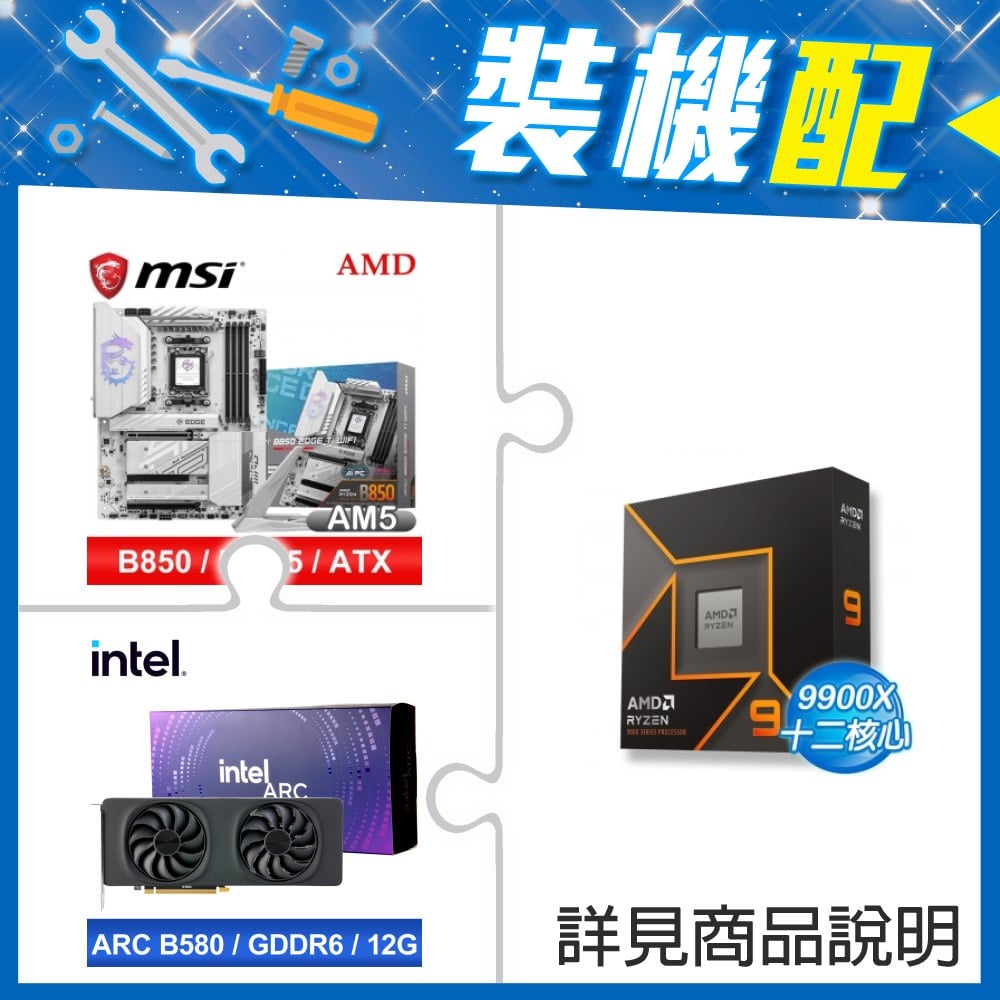 ☆裝機配★ AMD R9 9900X+微星 MPG B850 EDGE TI WIFI ATX主機板+Intel Arc B580 12G 20 Core 顯示卡