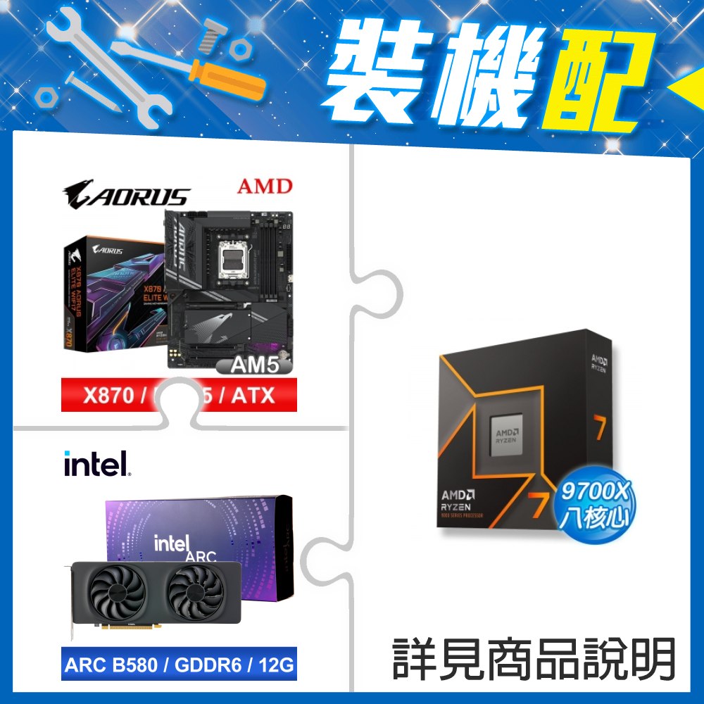 ☆裝機配★ AMD R7 9700X+技嘉 X870 AORUS ELITE WIFI7 ATX主機板+Intel Arc B580 12G 20 Core 顯示卡