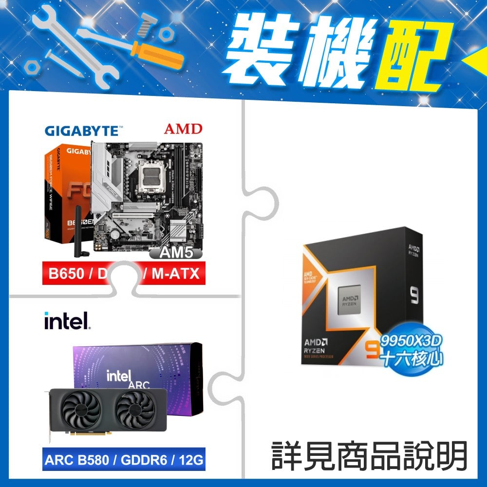 ☆裝機配★ AMD R9 9950X3D+技嘉 B650EM FORCE WIFI6E MATX主機板+Intel Arc B580 12G 20 Core 顯示卡