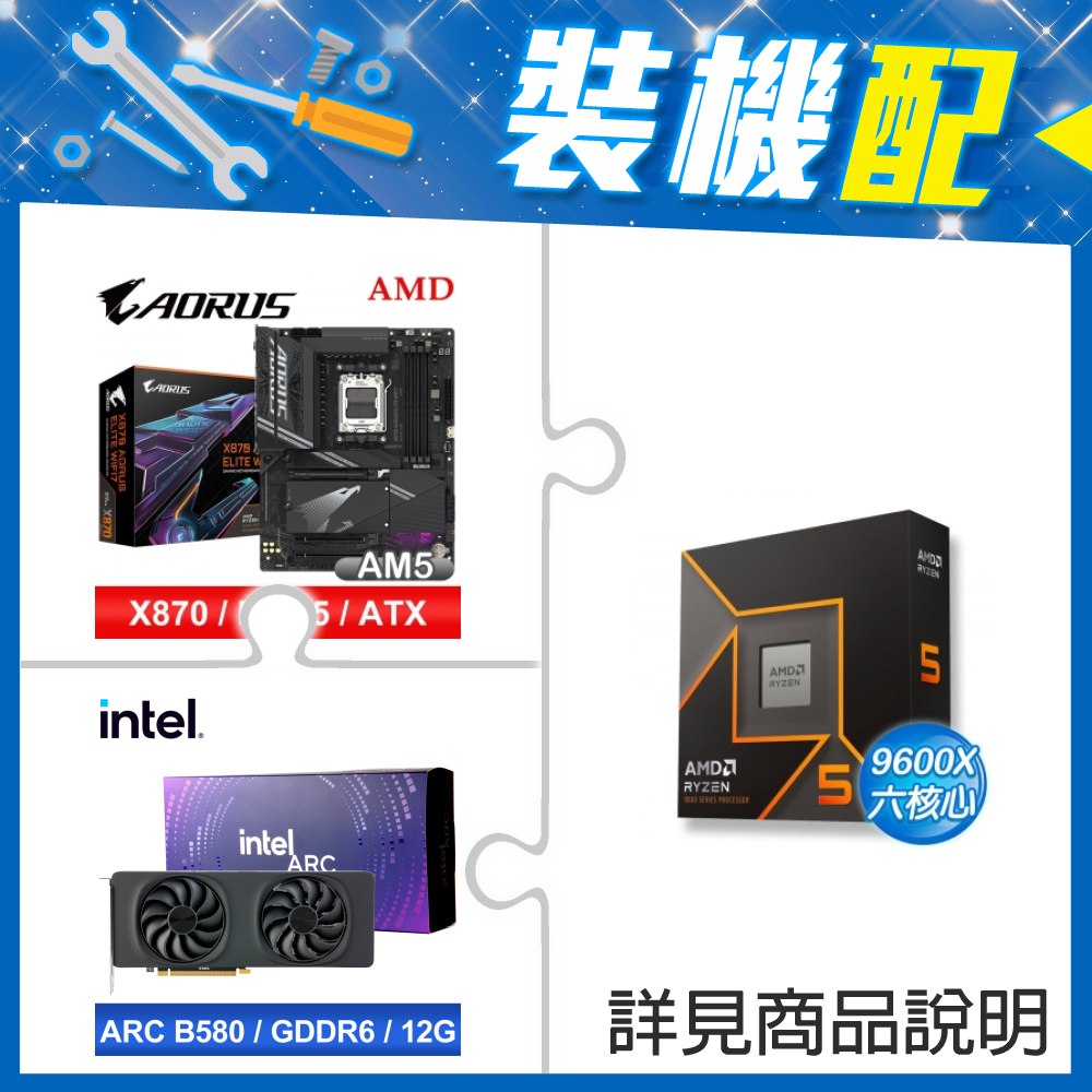 ☆裝機配★ AMD R5 9600X+技嘉 X870 AORUS ELITE WIFI7 ATX主機板+Intel Arc B580 12G 20 Core 顯示卡