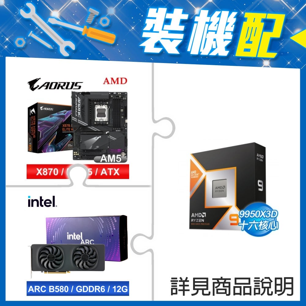 ☆裝機配★ AMD R9 9950X3D+技嘉 X870 AORUS ELITE WIFI7 ATX主機板+Intel Arc B580 12G 20 Core 顯示卡