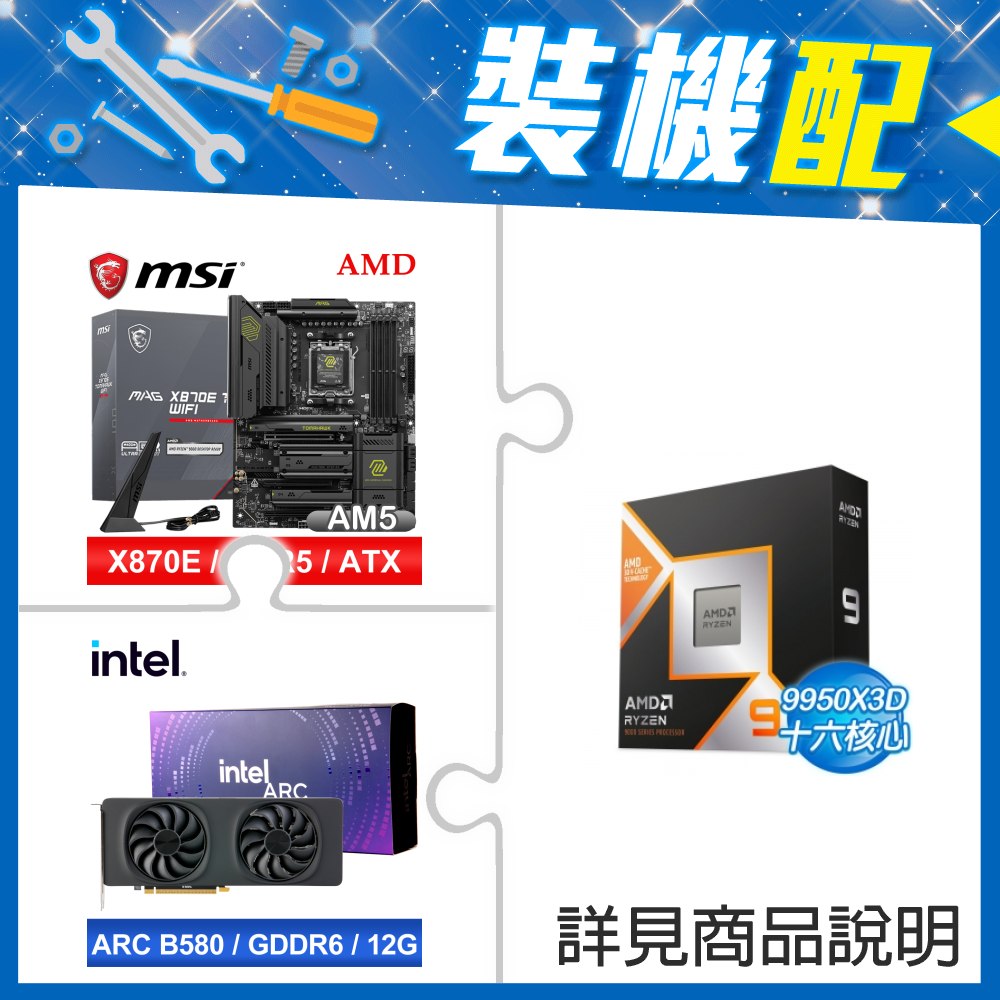 ☆裝機配★ AMD R9 9950X3D+微星 MAG X870E TOMAHAWK WIFI ATX主機板+Intel Arc B580 12G 20 Core 顯示卡